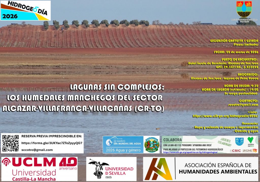 - Hidrogeodía «Lagunas sin complejos: los humedales manchegos. Sector Alcázar-Villafrancia-Villacañas (Ciudad Real-Toledo), 22 marzo 2026